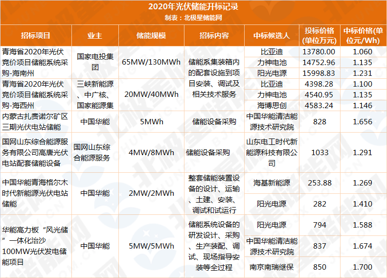 從此次引起熱議的光伏配儲(chǔ)能領(lǐng)域來(lái)看,在北極星儲(chǔ)能網(wǎng)統(tǒng)計(jì)的數(shù)據(jù)中,今年7月開(kāi)標(biāo)的華能高力板光伏儲(chǔ)能項(xiàng)目,參與投標(biāo)企業(yè)給出的報(bào)價(jià)最低1.588元/Wh。到今年10月國(guó)網(wǎng)山東綜能和華能青海的項(xiàng)目中,儲(chǔ)能中標(biāo)成本最低都已經(jīng)接近1.2元/Wh左右。此次青海光伏競(jìng)價(jià)項(xiàng)目?jī)?chǔ)能投標(biāo)價(jià)格均價(jià)約1.134元/Wh,較7月份已經(jīng)下降了約28.6%。