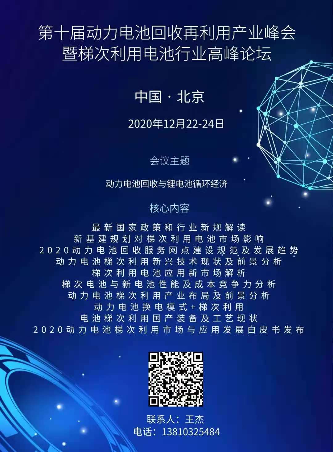 為了促進(jìn)電池回收行業(yè)發(fā)展,引導(dǎo)廢舊動(dòng)力電池回收網(wǎng)絡(luò)體系建立,探討新基建規(guī)劃帶來(lái)的新市場(chǎng)機(jī)遇,提高動(dòng)力電池全生命周期價(jià)值,探索新型商業(yè)模式及盈利點(diǎn)。由中國(guó)電池聯(lián)盟、中國(guó)綠色供應(yīng)鏈聯(lián)盟電池專委會(huì)、中國(guó)電子節(jié)能技術(shù)協(xié)會(huì)電池專委會(huì)聯(lián)合舉辦的“第十屆動(dòng)力電池回收再利用產(chǎn)業(yè)峰會(huì)暨梯次利用電池市場(chǎng)發(fā)展論壇”,即將在北京召開(kāi)。