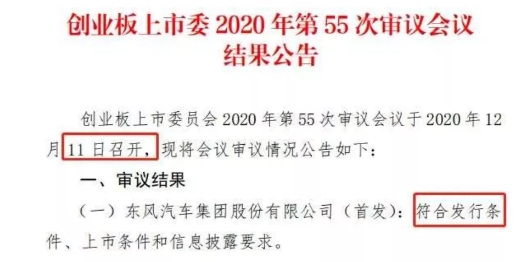 3000億巨頭,"閃電過會"!創(chuàng)業(yè)板史上最大IPO來了;開板11年,創(chuàng)業(yè)板迎來史上最大IPO,擬募資210億的東風(fēng)集團(tuán)。東風(fēng)集團(tuán)2020年6月底總資產(chǎn)接近3000億。12月11日,創(chuàng)業(yè)板上市委員會2020年第55次審議會議召開,東風(fēng)集團(tuán)等4家企業(yè)上會,并且均順利過會。這意味著,在H股上市15年后,東風(fēng)集團(tuán)的距離A股上市越來越近了。