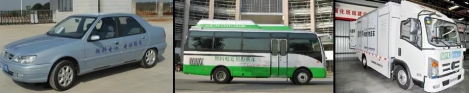 東風(fēng)汽車燃料電池汽車,從左至右依次為:楚天一號、楚天二號、廂式運(yùn)輸車