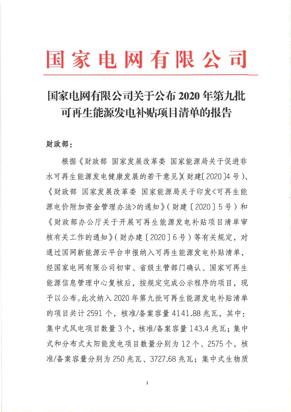 可再生能源發(fā)電補(bǔ)貼項(xiàng)目2020年第七批清單2591個(gè),核準(zhǔn)備案容量4141.88兆瓦