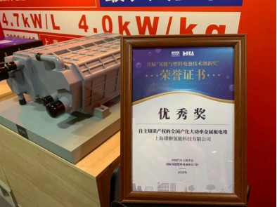今年9月,首屆“氫能與燃料電池技術(shù)創(chuàng)新獎(jiǎng)”在“第五屆國(guó)際氫能與燃料電池汽車大會(huì)”(FCVC 2020)上揭曉并頒布。驥翀氫能“自主知識(shí)產(chǎn)權(quán)的全國(guó)產(chǎn)化大功率金屬板電堆”項(xiàng)目獲得“優(yōu)秀獎(jiǎng)”;