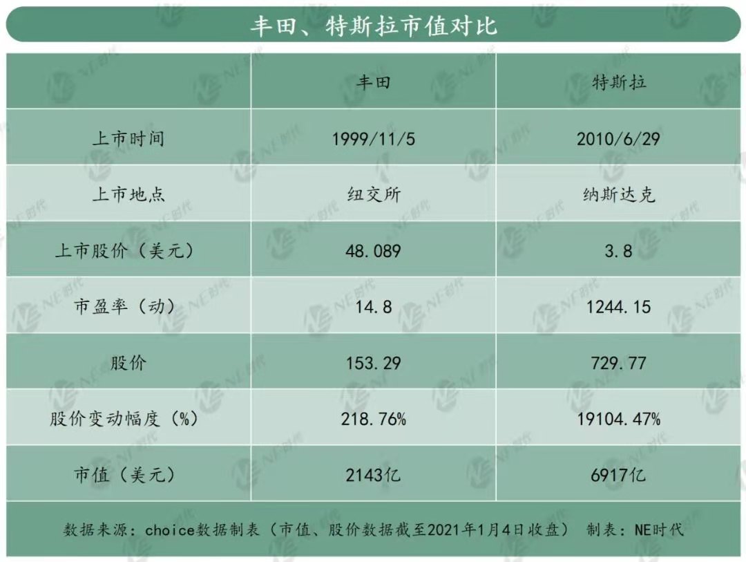 特斯拉上市不到10年,股價翻了近191倍,市值達(dá)6917億美元,遠(yuǎn)超上市逾20年的豐田。