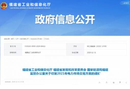 福建省工業(yè)和信息化廳 福建省發(fā)展和改革委員會(huì) 國家能源局福建監(jiān)管辦公室關(guān)于印發(fā)2021年電力市場(chǎng)交易方案的通知