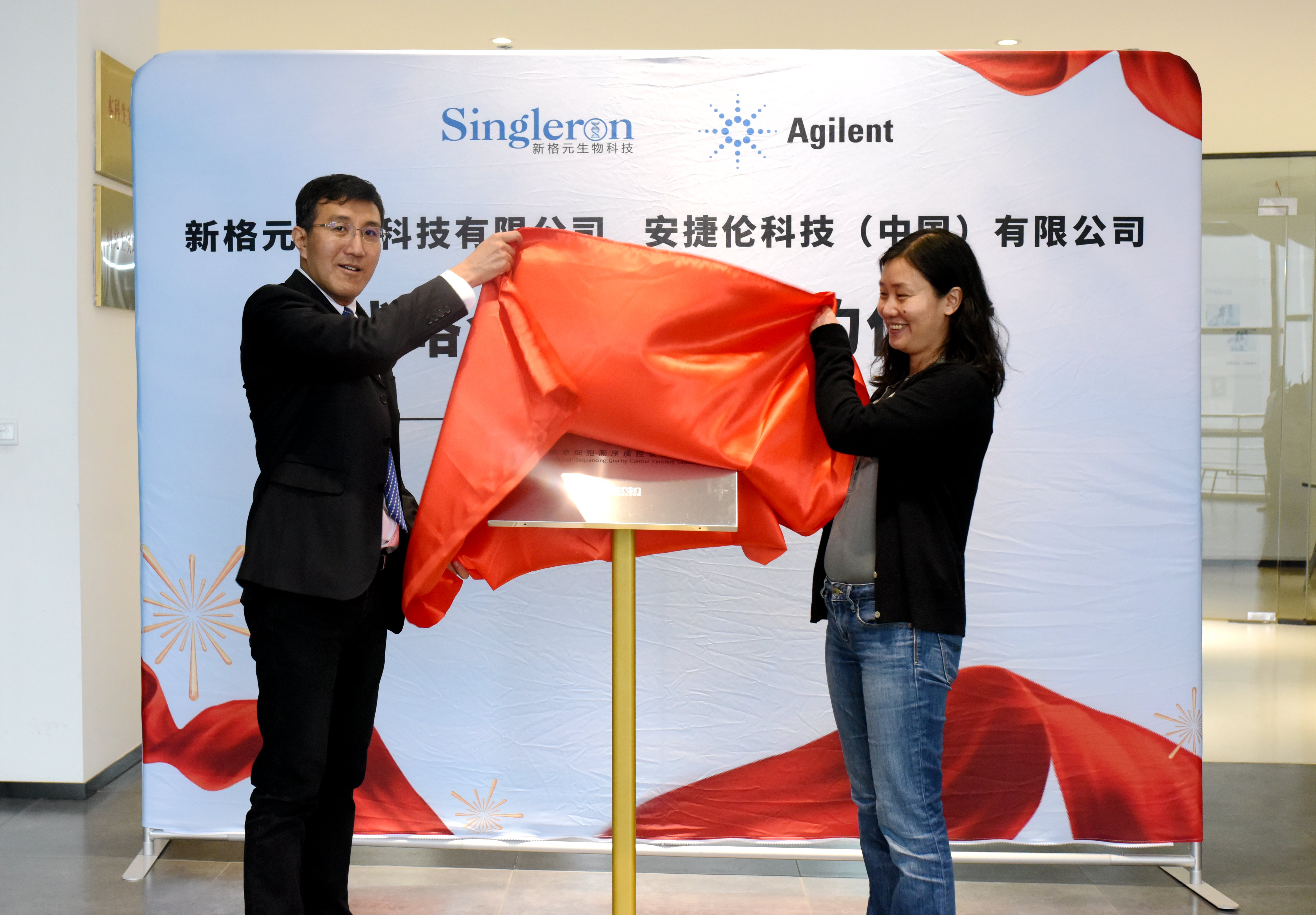 雙方領(lǐng)導(dǎo)為《安捷倫單細(xì)胞測序質(zhì)控認(rèn)證實驗室》揭牌
