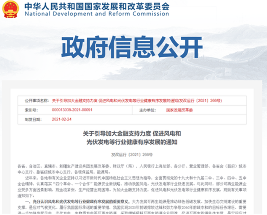 關(guān)于引導(dǎo)加大金融支持力度 促進(jìn)風(fēng)電和光伏發(fā)電等行業(yè)健康有序發(fā)展的通知