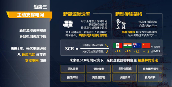 新能源滲透率提高導(dǎo)致電網(wǎng)強度下降。未來5年,光伏電站必須從適應(yīng)電網(wǎng)逐步向支撐電網(wǎng)演進。