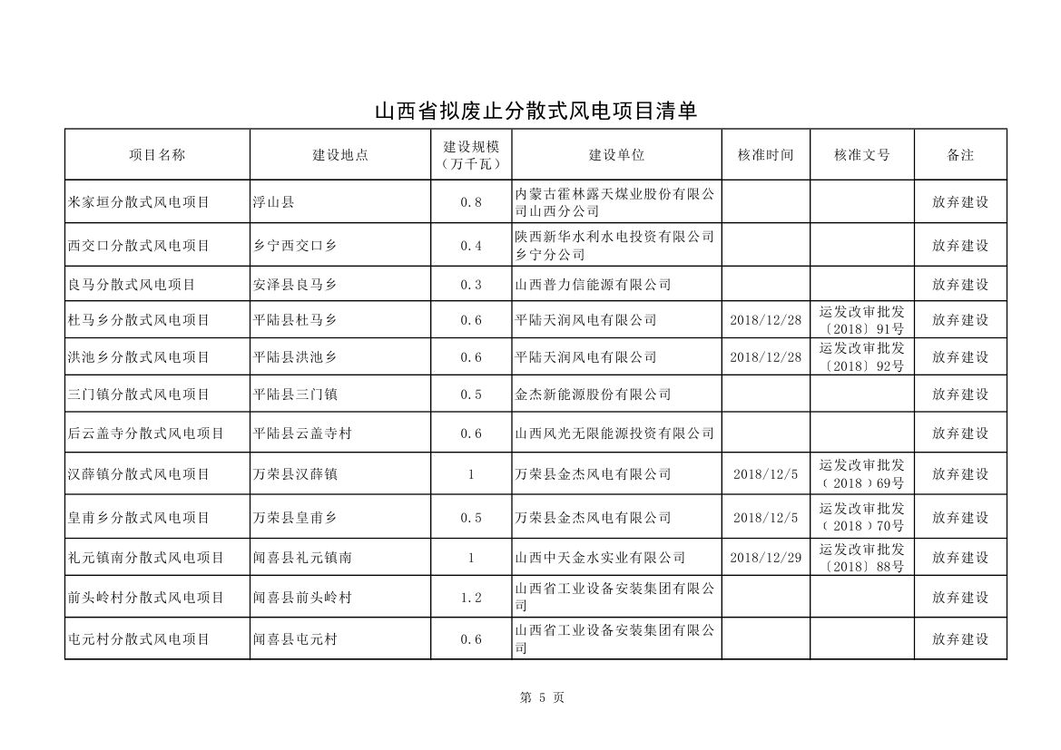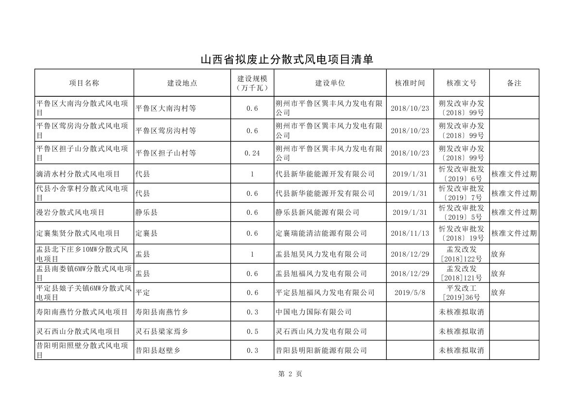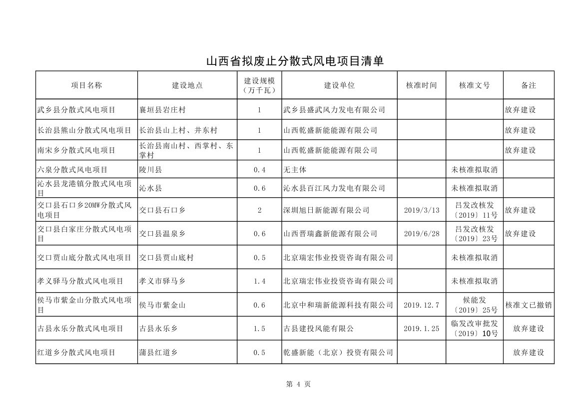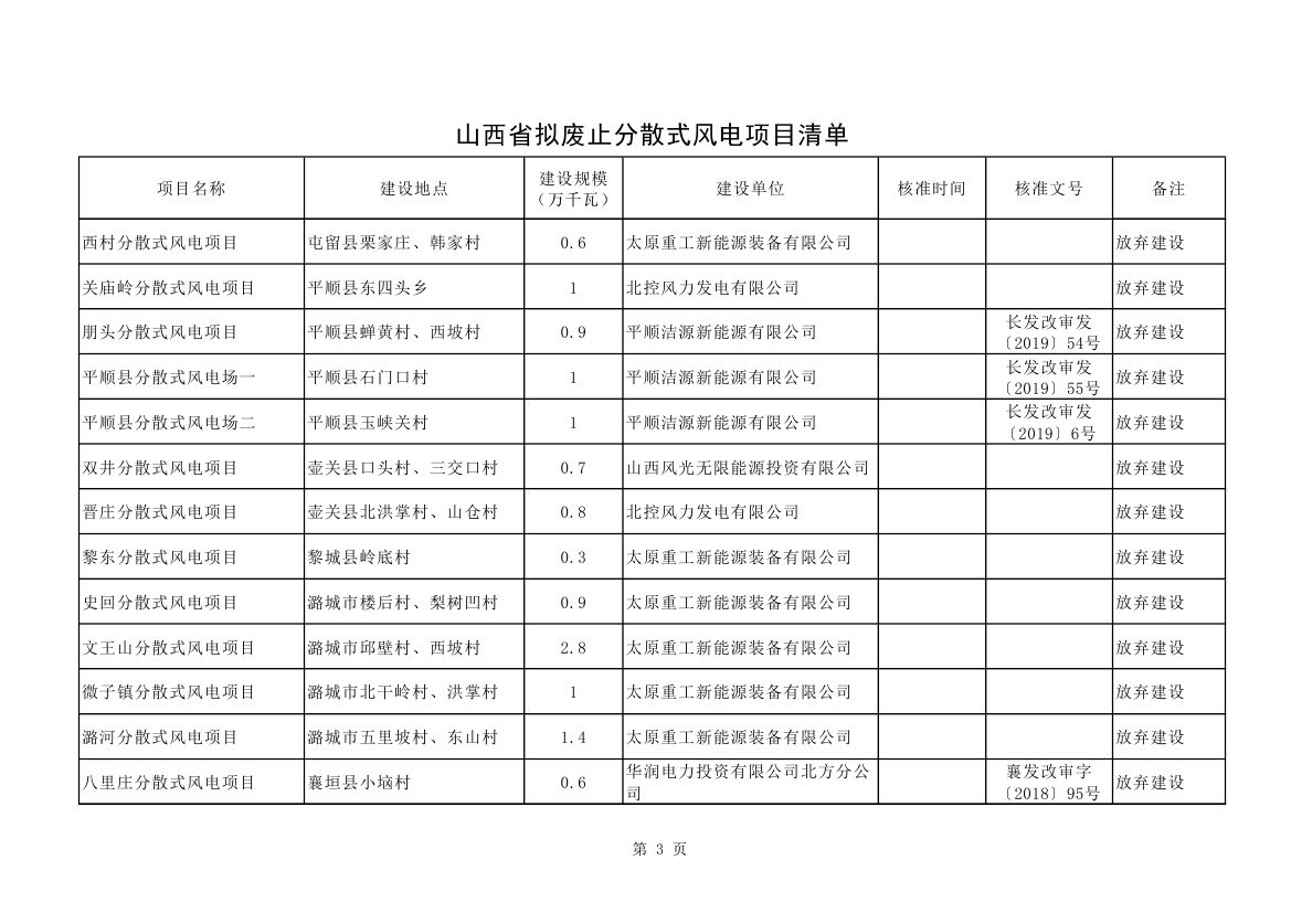 關于山西省“十三五”分散式風電項目開發(fā)建設方案擬廢止項目的公示