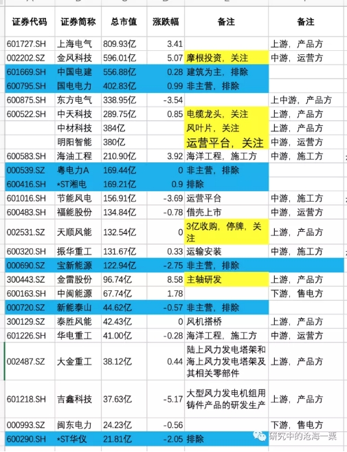 2.中游都是主機廠+風(fēng)電投建方,數(shù)量最多,且受政策影響最大,暫時關(guān)注,補貼取消后才知道誰是裸泳;