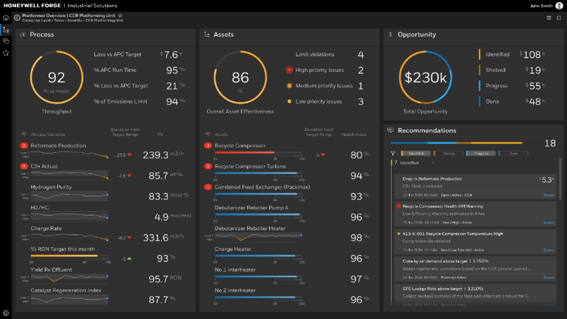 在生產(chǎn)過程和設(shè)備關(guān)聯(lián)的基礎(chǔ)上,霍尼韋爾智能工廠解決方案能夠部署在云端或當(dāng)?shù)財(cái)?shù)據(jù)中心,為客戶提供基于設(shè)備與過程的智能分析,該解決方案把煉油流程的實(shí)時(shí)機(jī)理模型,運(yùn)用到了智能工廠里面,幫助客戶更加直觀、高效地了解工廠的操作優(yōu)化路徑。