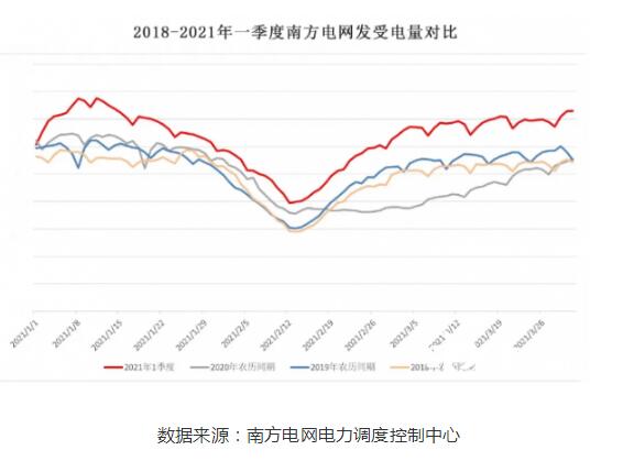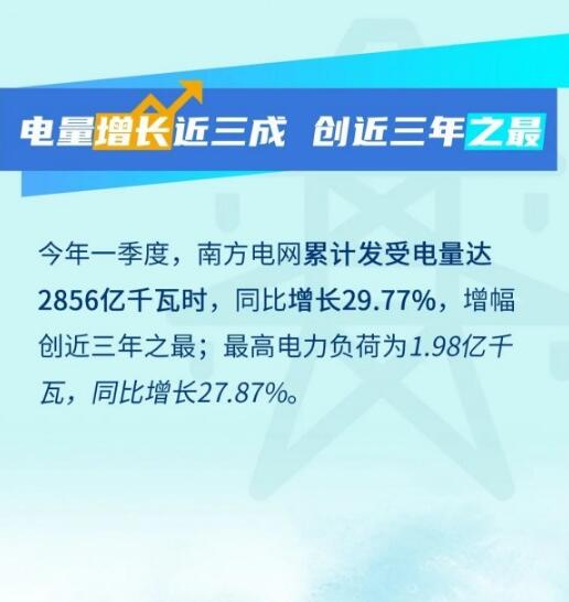 今年一季度,南方電網(wǎng)負(fù)荷、電量增長顯著,特別是春節(jié)后負(fù)荷恢復(fù)速率超過2019年。