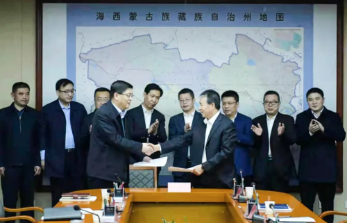 4月22日, 中國能建規(guī)劃設計集團與青海省海西蒙古族藏族自治州人民政府簽署4000兆瓦風光儲氫一體化項目投資合作框架協議。中國能建黨委常委、總會計師陳關中與海西州黨委副書記、州長孟海,副州長欒風江見證簽約并座談交流。