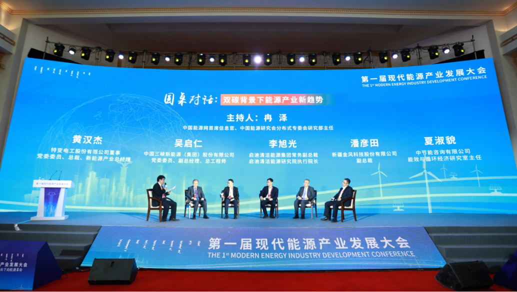 在圓桌對話環(huán)節(jié),中國能源網首席信息官、中國能源研究會分布式專委會研究部主任冉澤,特變電工股份有限公司董事、黨委委員、總裁、新能源產業(yè)總經理黃漢杰,中國三峽新能源(集團)股份有限公司黨委委員、副總經理、總工程師吳啟仁,啟迪清潔能源集團常務副總裁、啟迪清潔能源研究院執(zhí)行院長李旭光,新疆金風科技股份有限公司副總裁潘彥田,中節(jié)能咨詢有限公司能效與循環(huán)經濟研究室主任夏淑貌共同探討了“雙碳背景下能源產業(yè)新趨勢”;