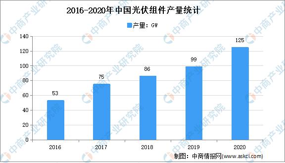 光伏是太陽能光伏發(fā)電系統(tǒng)的簡稱,是一種利用太陽電池半導體材料的光伏效應,將太陽光輻射能直接轉換為電能的一種新型發(fā)電系統(tǒng),有獨立運行和并網運行兩種方式。光伏組件是太陽能發(fā)電系統(tǒng)中的核心部分,也是太陽能發(fā)電系統(tǒng)中最重要的部分。數據顯示,2020年我國光伏組件產量達到124.6GW,同比增長達26.4%。