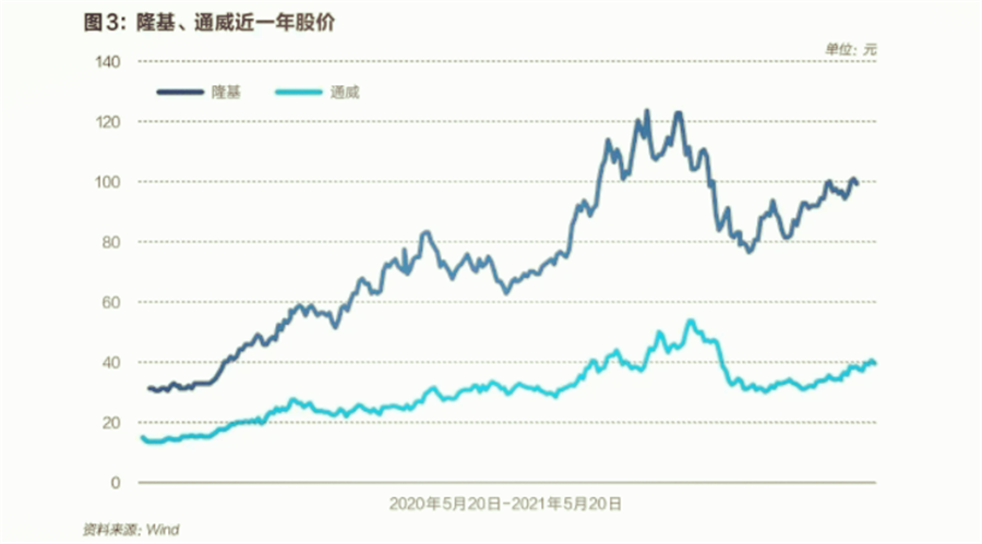 對(duì)于整個(gè)光伏行業(yè)來(lái)說(shuō),2021年具有里程碑意義:光伏進(jìn)入平價(jià)時(shí)代,碳中和目標(biāo)帶來(lái)空前利好。多家光伏上市公司股價(jià)暴漲,隆基股份的市值從2019年8月的1000億元,漲到了如今的3600億元左右。行業(yè)第二名通威股份如今市值在1600億元左右,同比上漲約150%。