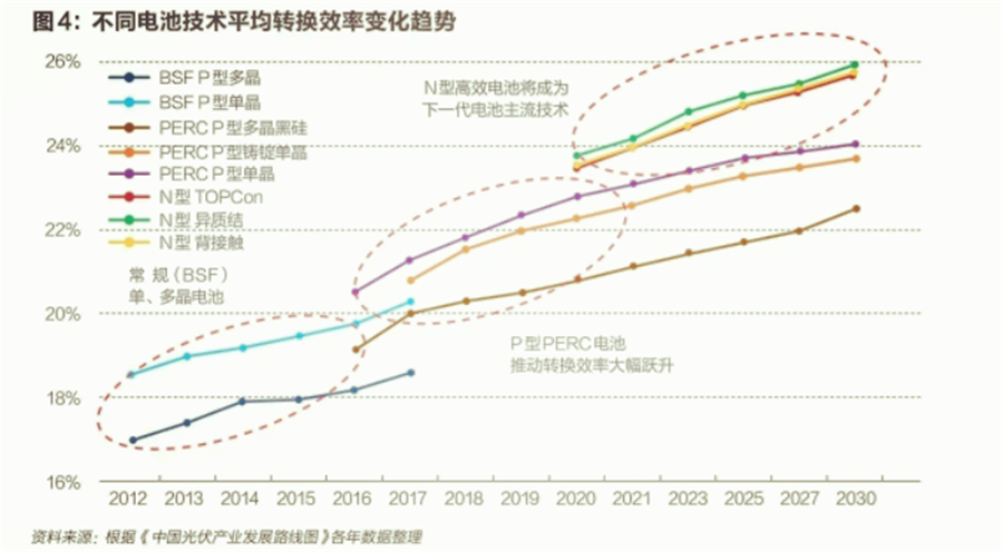 PERC電池是當(dāng)前光伏行業(yè)的主流電池。業(yè)內(nèi)認(rèn)為,基于P型硅片的PERC電池轉(zhuǎn)換效率已接近極限,另一類(lèi)基于N型硅片的電池里將誕生下一代高效電池。