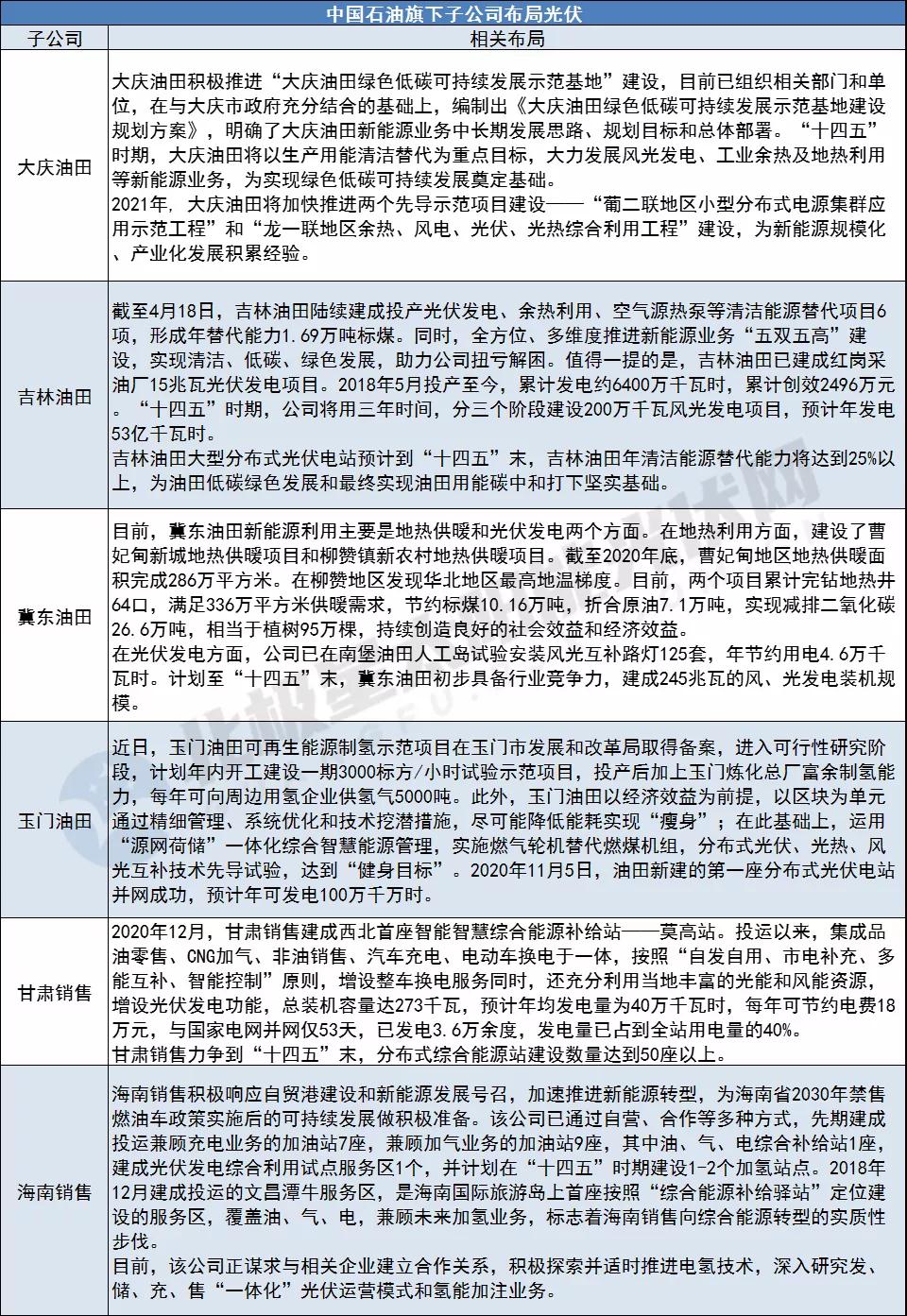 中國(guó)石油一直關(guān)注新能源的發(fā)展情況,并組織專(zhuān)項(xiàng)工作組跟蹤太陽(yáng)能發(fā)電、風(fēng)能、地?zé)?、氫能等技術(shù)的進(jìn)展情況。早在2018年中國(guó)石油就開(kāi)展了光伏加油站的試點(diǎn)工作。
