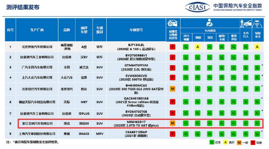 (領(lǐng)克05在C-IASI測試7項(xiàng)G(優(yōu)秀)高光表現(xiàn))