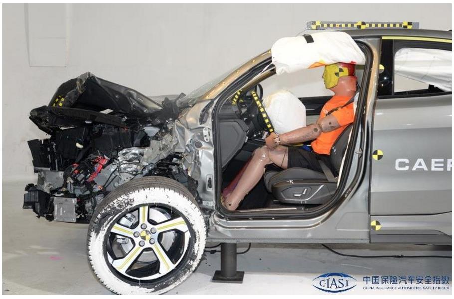 在最為嚴(yán)苛的時速64±1km/h的正面25%小偏置碰撞中,領(lǐng)克05得分為G(優(yōu)秀),表現(xiàn)相當(dāng)搶眼。以往,國內(nèi)的碰撞測試往往會止步于正面40%重疊度的碰撞測試,重疊面積接近整車寬度的一半,而且使用的是可以變形的非剛性壁障,相對容易。C-IASI引入美國IIHS中的正面25%偏置碰撞,不僅重疊面積大幅縮小,而且使用不可潰縮的剛性壁障,將國內(nèi)碰撞測試的難度大幅提升。