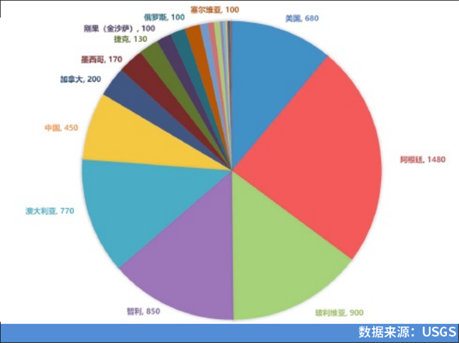 自然資源方面,美國也并無優(yōu)勢,雖然根據(jù)美國地質(zhì)勘探局USGS的數(shù)據(jù)(圖2),全球探明鋰資源約6200萬噸,美國儲量約680萬噸,占比11%,位居世界第五,排在阿根廷、玻利維亞、智利、澳大利亞之后。但可開采儲量方面,美國就非常有限了,鹽湖鹵水型鋰資源主要分布在南美鋰三角——阿根廷、智利、玻利維亞以及中國,固態(tài)鋰輝石資源主要分布在澳大利亞。