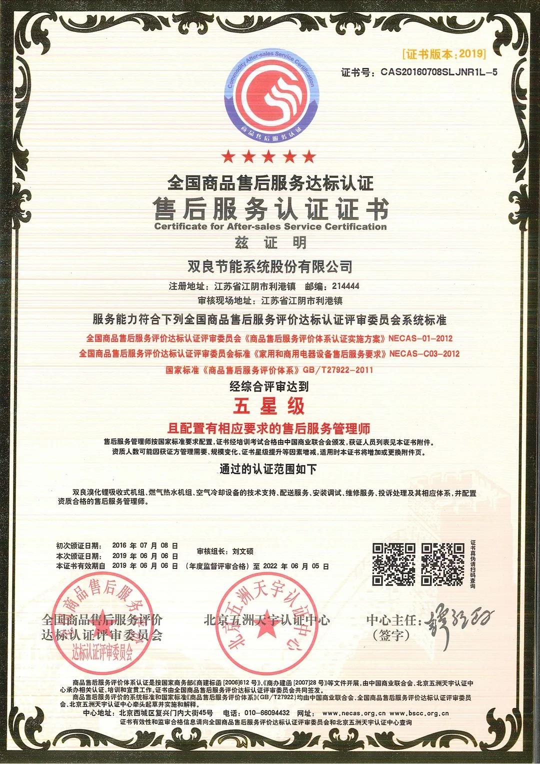 近日,經全國商品售后服務評價達標認證評審委員會和北京五洲天宇認定中心兩大權威機構為期兩天的嚴格監(jiān)督審查,雙良節(jié)能憑借完善、專業(yè)的售后服務體系,一次性通過“五星級”售后服務認證監(jiān)審和“七星級(卓越)” CTEAS售后服務體系完善程度認證監(jiān)審。此次監(jiān)審通過,再一次向行業(yè)和客戶展示了我司在服務功能、服務網(wǎng)絡、服務質量、服務體系、服務標準等方面居于國內領先水平,是對雙良節(jié)能服務能力的國家級認定。