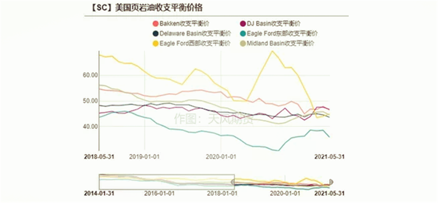 盡管收入端壓力較大,但就頁巖油行業(yè)自身的技術(shù)而言,其鉆機效率在提高,鉆機成本在下降,實際上整體breakeven在不斷降低。