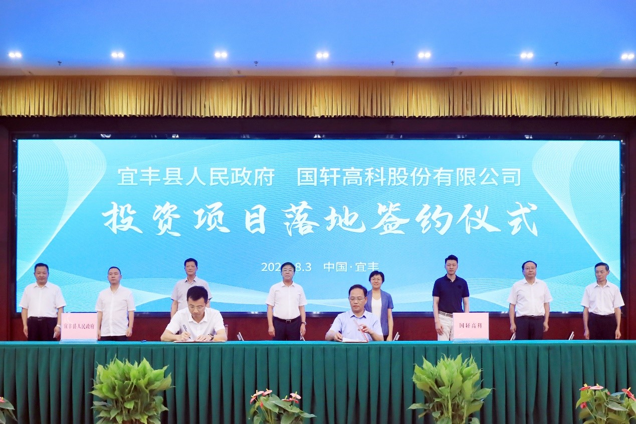 宜豐縣委副書記、縣政府縣長候選人王方大,江西國軒新能源科技有限公司董事長黃章喜代表雙方簽約