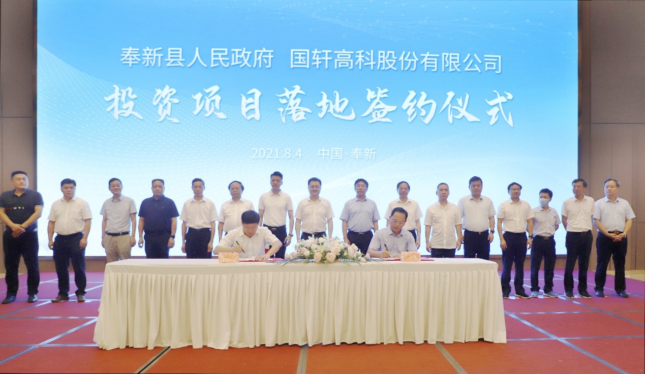 奉新縣委副書記、縣政府縣長提名人選喻軍,江西國軒新能源科技有限公司董事長黃章喜代表雙方簽約