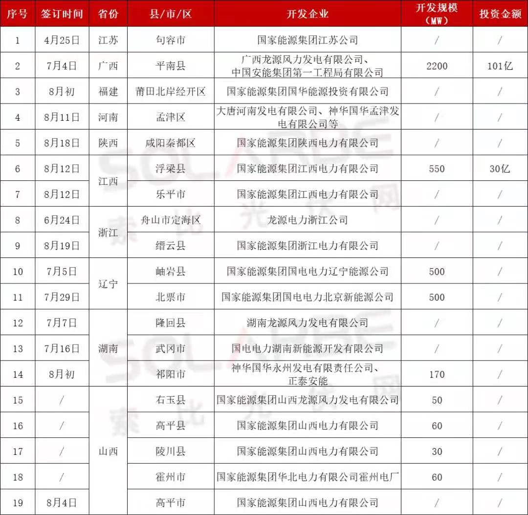 上半年,國(guó)家能源集團(tuán)江蘇公司、龍?jiān)措娏φ憬痉謩e與江蘇句容市、浙江舟山市定海區(qū)簽署了整縣屋頂分布式光伏等相關(guān)協(xié)議。