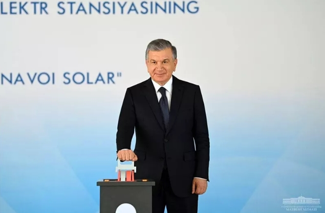 烏茲別克斯坦總統(tǒng)沙夫卡特•米爾濟約耶夫出席電站并網(wǎng)儀式并親手合上電閘