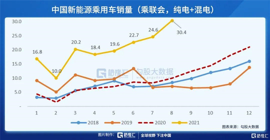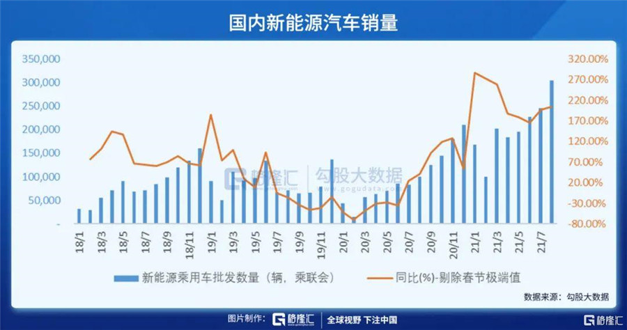 汽車行業(yè)一般有金九銀十的說法,即四季度的銷量會(huì)比前三季度要更好,通過1-8月的銷量數(shù)據(jù)推測(cè),2021年全年國內(nèi)新能源汽車銷量300萬輛是可以預(yù)見的,而如果更樂觀的預(yù)測(cè),可能會(huì)落在310-320萬輛左右。對(duì)于年初乘聯(lián)會(huì)200萬輛的銷量預(yù)測(cè),已經(jīng)上調(diào)超過50%。