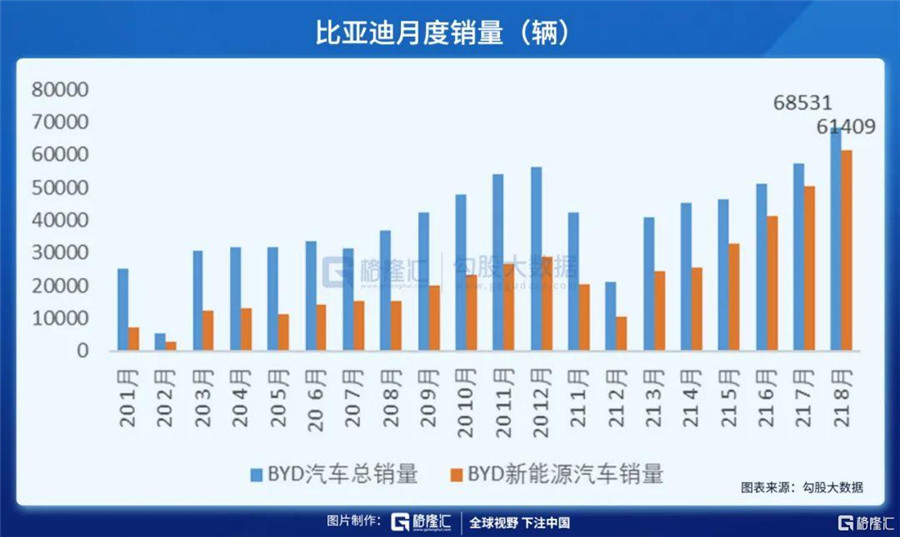值得一提的是比亞迪8月新能源乘用車銷量再創(chuàng)歷史新高,達(dá)到67630輛,同比增漲331.9%,環(huán)比增長21%。其中DM車型銷量30126輛,純電銷量30382輛。電動(dòng)車銷量60508輛;燃油車銷量7122輛。