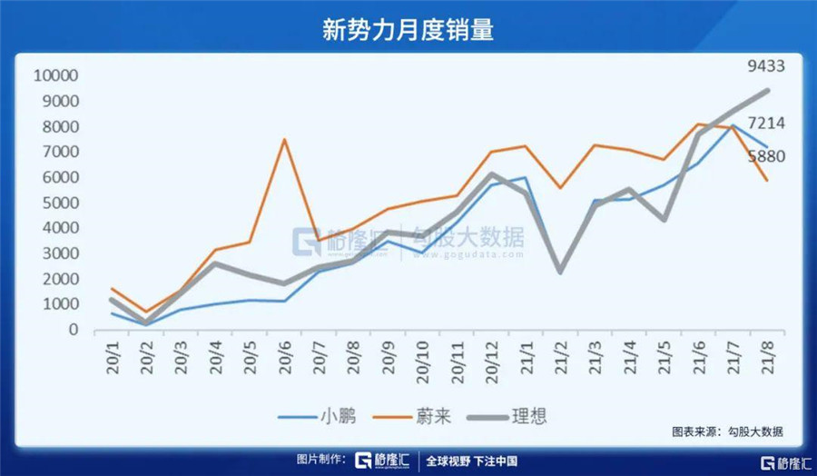 除了自主和傳統(tǒng)車企,新勢(shì)力中也有亮眼表現(xiàn),8月理想汽車銷量達(dá)9433輛,相比7月,環(huán)比又增長了6.92%,繼續(xù)超預(yù)期,產(chǎn)銷似乎并不受芯片壓制。今年前8個(gè)月累計(jì)銷量48176輛。