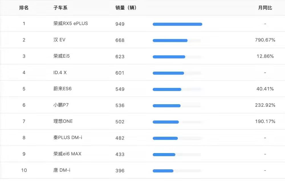 但是,來自上汽榮威的RX5 ePLUS車型成為上海8月單一車型銷量榜的冠軍,該車在上海地區(qū)的8月銷量達(dá)到949輛,超過第二名比亞迪漢 EV車型281臺。