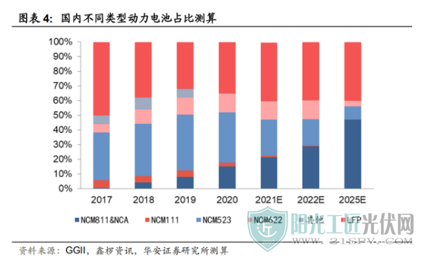 按照材料成本不同,NCM三元電池可以分為111、523、622、811等若干種。其中,NCM811是鈷占比最低的產(chǎn)品,寧德時代已經(jīng)于2019年實(shí)現(xiàn)量產(chǎn)。