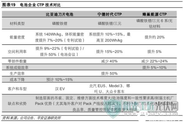 比亞迪的刀片電池就是最好的例子。竭力將單體電芯尺寸做大,從而在有限空間內(nèi)放置更多的電芯單體,通過壓縮多余連接件的方式,提升電池包內(nèi)電芯占比,從而最終有效降低成本,提升能量密度。數(shù)據(jù)顯示,同樣體積刀片電池的效率提升在50%以上。