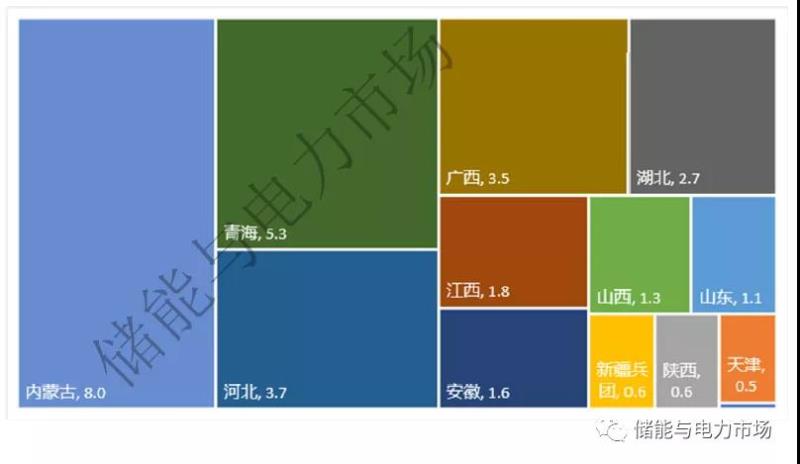 其中內蒙古因儲能配置比例高達新能源裝機的30%,使其合計新增儲能達到8GW。