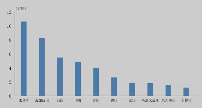 據(jù)中國(guó)汽車工業(yè)協(xié)會(huì)整理的海關(guān)總署數(shù)據(jù)顯示,2021年,中國(guó)新能源汽車出口量排名前十位國(guó)家依次是比利時(shí)、孟加拉國(guó)、英國(guó)、印度、泰國(guó)、德國(guó)、法國(guó)、斯洛文尼亞、澳大利亞和菲律賓。與上年相比,上述十國(guó)出口量均呈增長(zhǎng),其中斯洛文尼亞、澳大利亞和泰國(guó)增速最為明顯。2021年,上述十國(guó)新能源汽車出口42.4萬(wàn)輛,占新能源汽車出口總量的77.8%。