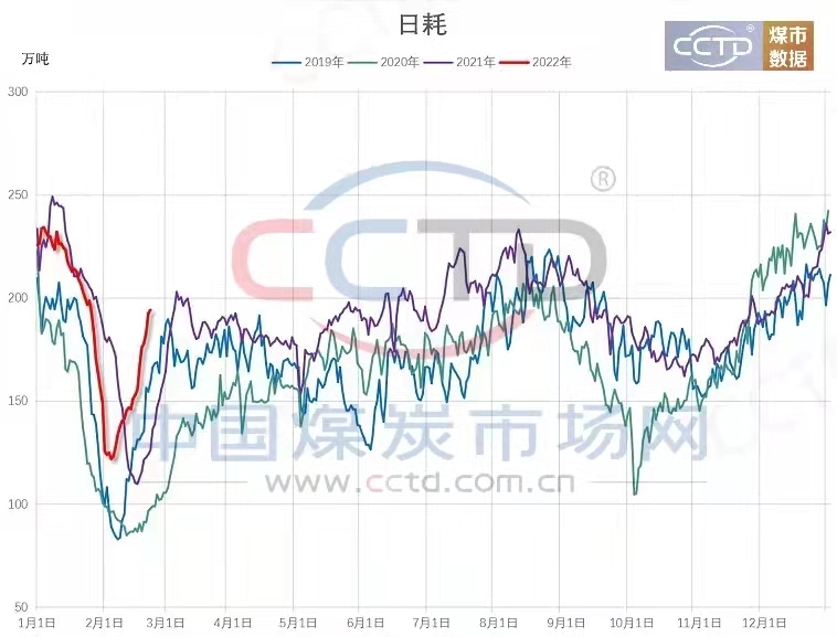 目前,下游電廠采購需求陸續(xù)增多,港口市場情緒升溫,市場活躍度提升,2月底前,國內(nèi)大部地區(qū)氣溫偏低,尤其華南沿海地區(qū)低溫偏低明顯,日耗表現(xiàn)強(qiáng)勢,而進(jìn)口煤優(yōu)勢不再,國內(nèi)煤成為拉運(yùn)重點(diǎn)。