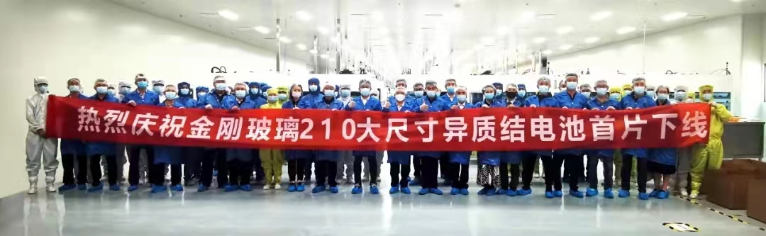 全球經(jīng)濟(jì)受新冠疫情的影響仍在持續(xù),而光伏市場(chǎng)的行情變化亦是跌宕起伏,行業(yè)內(nèi)百家爭(zhēng)鳴,技術(shù)革新加速更迭。金剛玻璃異質(zhì)結(jié)項(xiàng)目全體員工踐行“效率決定效益、細(xì)節(jié)決定成敗、速度決定生死”的生產(chǎn)精神,自2021年7月起,歷經(jīng)240天,在股東公司歐昊集團(tuán)的全力支持下,克服了各種生產(chǎn)困難,實(shí)現(xiàn)了210大尺寸異質(zhì)結(jié)電池首片的順利下線。