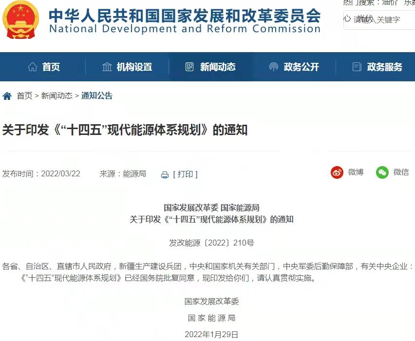 國(guó)際能源網(wǎng)/風(fēng)電頭條(微信號(hào):wind-2005s)獲悉,3月22日,國(guó)家發(fā)展改革委 國(guó)家能源局發(fā)布關(guān)于《“十四五”現(xiàn)代能源體系規(guī)劃》的通知。