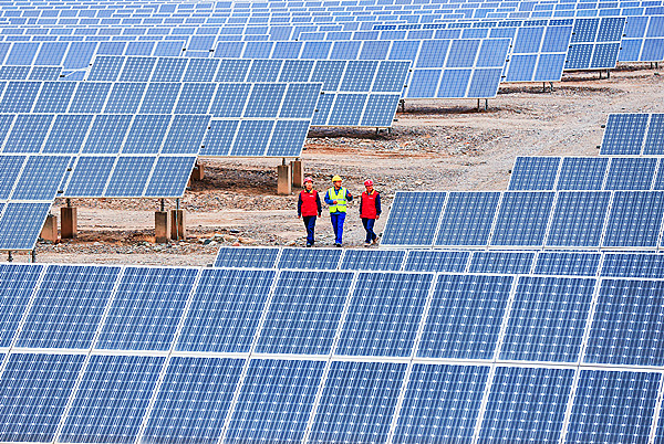 國網(wǎng)哈密供電公司黨員服務隊前往哈密石城子光伏產業(yè)園開展用電服務,助力新能源產業(yè)發(fā)展。(馮洋 攝)