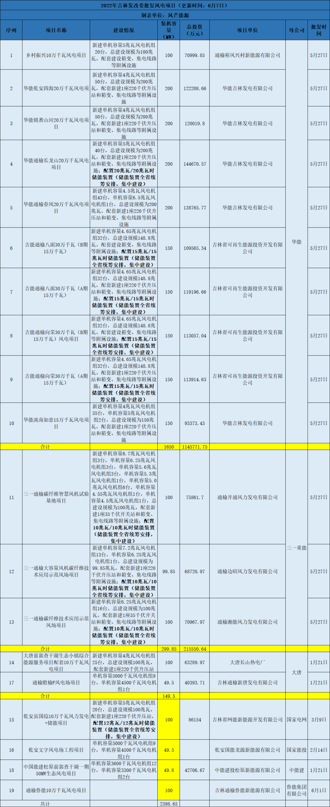 風芒能源據公開信息不完全統計,今年以來截至目前,吉林省發(fā)改委共核準19個風電項目合計2.398GW。