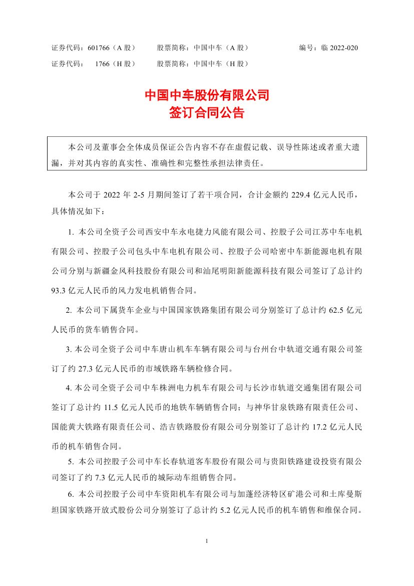 6月7日,中國(guó)中車發(fā)布簽訂合同公告,根據(jù)公告:中國(guó)中車集團(tuán)全資子公司西安中車永電捷力風(fēng)能有限公司、控股子公司江蘇中車電機(jī)有限公司、控股子公司包頭中車電機(jī)有限公司、控股子公司哈密中車新能源電機(jī)有限公司分別與金風(fēng)科技和汕尾明陽(yáng)新能源科技有限公司簽訂了總計(jì)約93.3 億元人民幣的風(fēng)力發(fā)電機(jī)銷售合同。全資子公司山東中車風(fēng)電有限公司與陜西中洋建設(shè)工程有限公司和深能北方(蘇尼特左旗)能源開發(fā)有限公司分別簽訂了總計(jì)約 5.1億元人民幣的風(fēng)力發(fā)電機(jī)銷售合同。金額共計(jì)98.4億元。