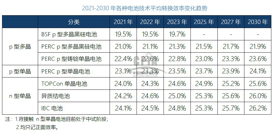 晶硅電池理論上的效率極限是29.4% ,現(xiàn)實(shí)條件可實(shí)現(xiàn)的工程極限效率是27.1%;量產(chǎn)電池方面,根據(jù)中國(guó)光伏行業(yè)協(xié)會(huì)(CPIA)預(yù)測(cè),到2030年,常規(guī)PERC晶硅電池效率24.1%,HJT電池效率26%,TOPCon電池效率25.6%,IBC電池效率26.2%,逼近工程極限,而鈣鈦礦單結(jié)電池理論極限33%。同時(shí),鈣鈦礦電池的結(jié)構(gòu)特性使其對(duì)雜質(zhì)和缺陷的容忍度非常高,因此實(shí)際生產(chǎn)更容易逼近理論極限。