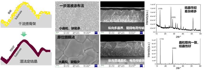 筆者認(rèn)為“原位固膜”技術(shù)是鈣鈦礦研發(fā)史上的一次思想飛躍,是打破常規(guī)認(rèn)知的靈感火花,也是另外兩項(xiàng)技術(shù)得以應(yīng)用的基礎(chǔ)。
