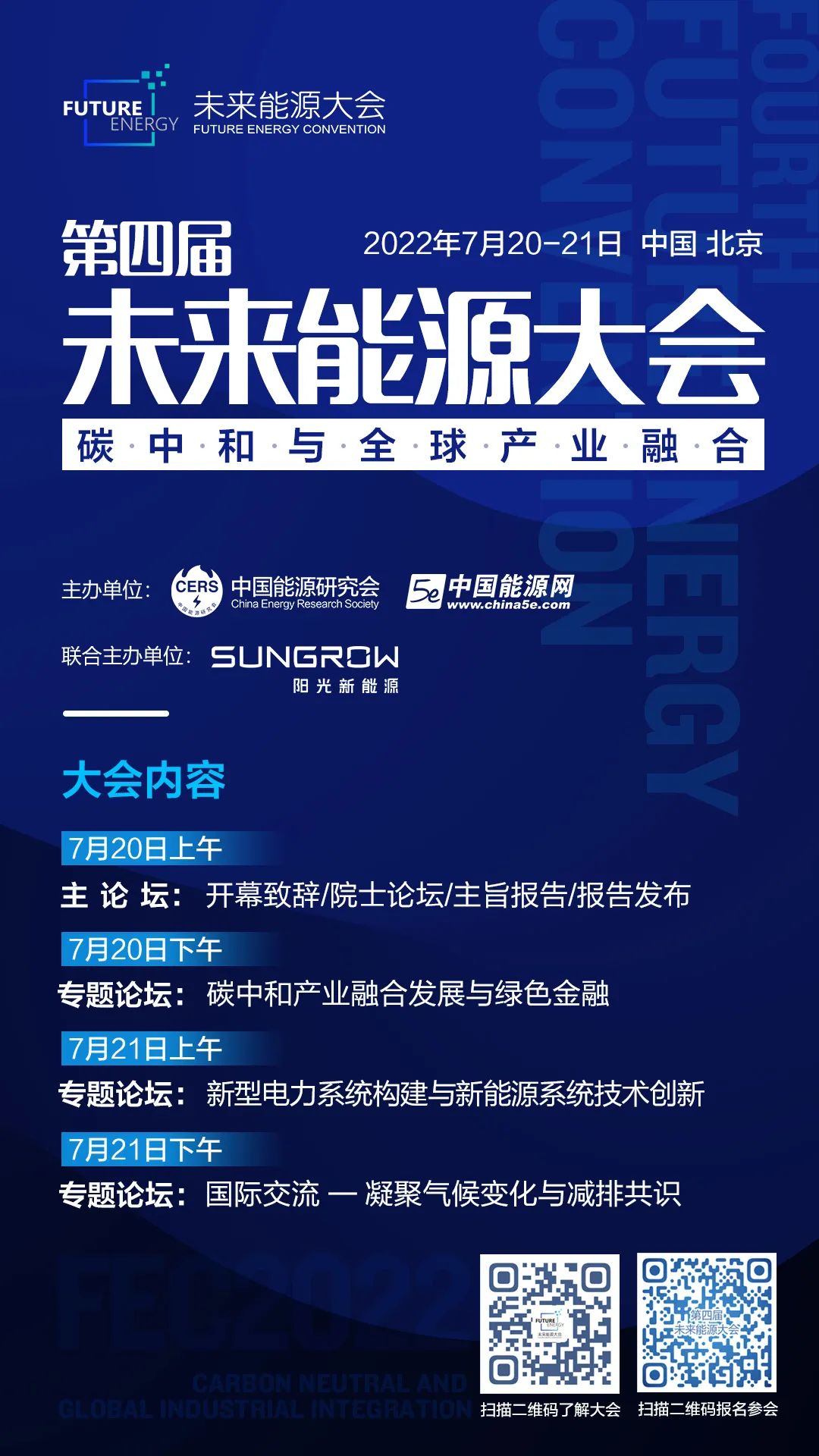 第四屆未來(lái)能源大會(huì)將突出未來(lái)能源系統(tǒng)及碳中和產(chǎn)業(yè)融合發(fā)展,創(chuàng)新產(chǎn)業(yè)新業(yè)態(tài),突出跨界融合、產(chǎn)業(yè)融合、區(qū)域融合形成的有機(jī)共生體系。2022年7月20日-21日,由中國(guó)能源研究會(huì)、中國(guó)能源網(wǎng)主辦,陽(yáng)光新能源開(kāi)發(fā)股份有限公司聯(lián)合主辦的第四屆未來(lái)能源大會(huì)在北京召開(kāi)。重關(guān)注碳中和產(chǎn)業(yè)融合與綠色金融,邀請(qǐng)來(lái)自國(guó)家電投集團(tuán),國(guó)家開(kāi)發(fā)銀行,中央財(cái)經(jīng)大學(xué),聯(lián)合信用管理有限公司等機(jī)構(gòu)專家深度探討。