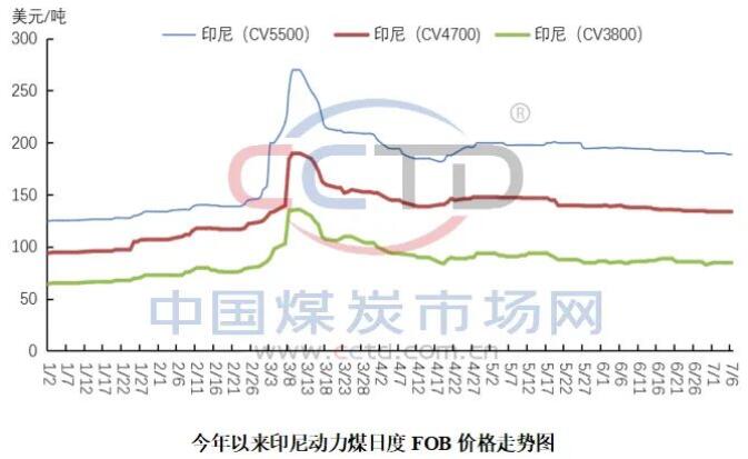 從下圖中可以看出,當(dāng)前印尼煤價(jià)雖然仍處高位,但是從4月下旬起開始穩(wěn)中調(diào)整,目前基本持穩(wěn)運(yùn)行。