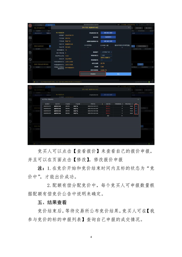 競買人在競價時間內(nèi)可進行多次申報,總申報量為各次申報的總量,總申報量不得超過競買人允許的最大申報數(shù)量。競價申報單允許向上修改報價和數(shù)量,不允許撤銷、向下修改報價或數(shù)量。