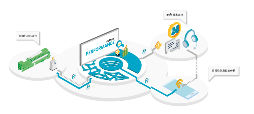 myPlant* 依托于云計算平臺,在多重網(wǎng)絡(luò)安全措施下確保數(shù)據(jù)安全。擁有強大實時監(jiān)測、預(yù)測分析能力的myPlant*,能夠為機組用戶提供諸多先進(jìn)且實用的功能,如: